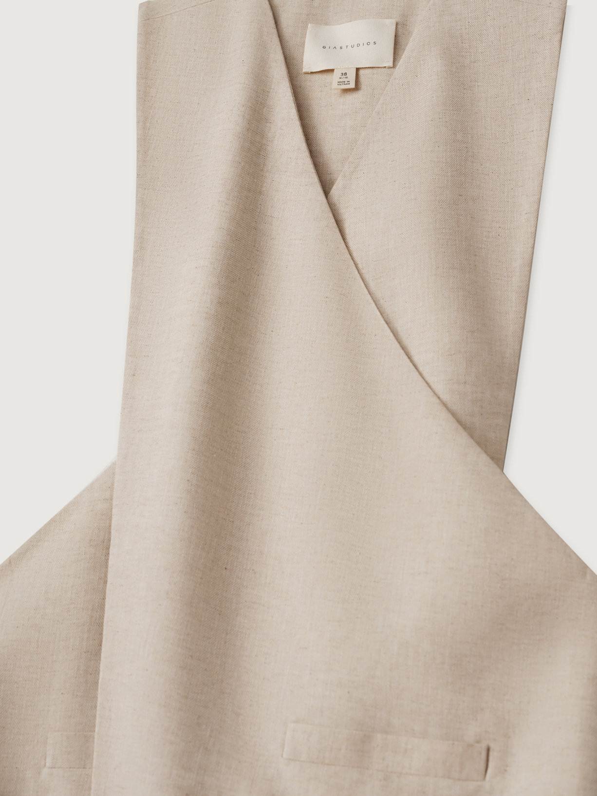 询盘商品-WRAP OVER LINEN VEST IN BEIGE