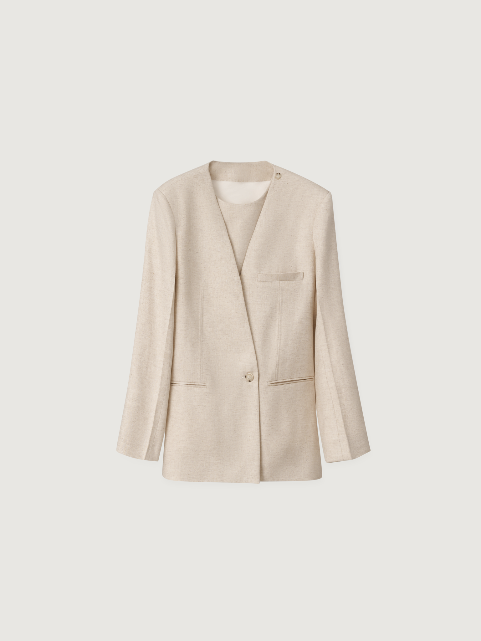 OVERSIZED SINGLE-BREASTED LINEN BLAZER IN IN BEIGE
